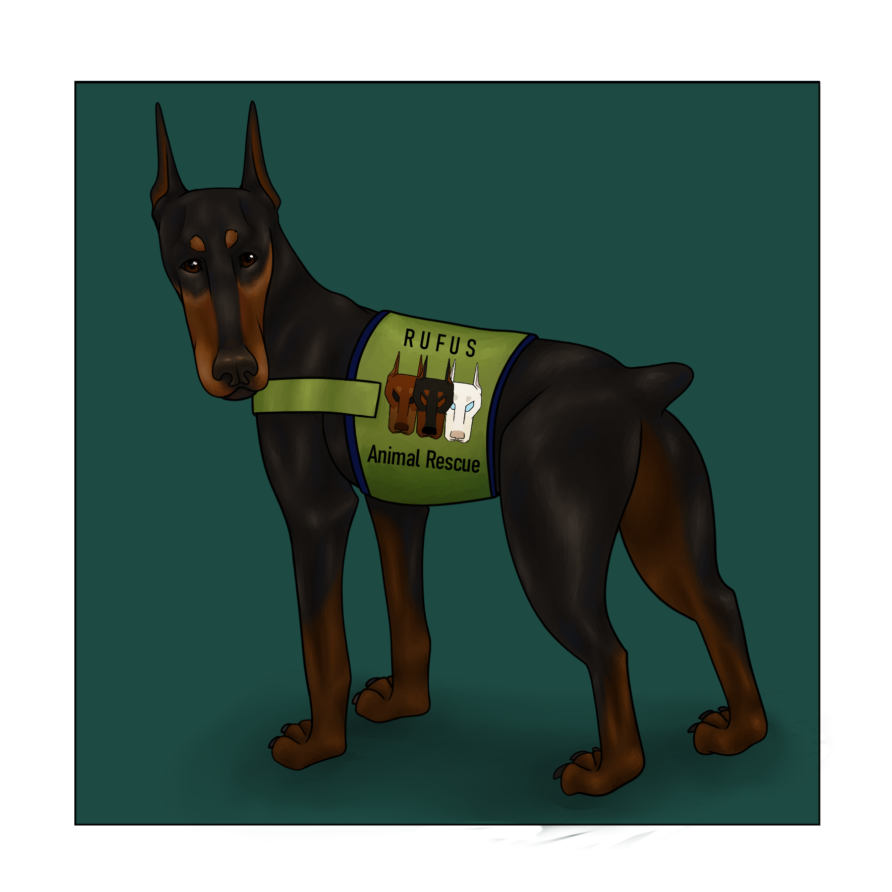 Rufus animal rescue is a fictional organization that created by Archie, his character art can been found in Character design. He created this rescue service because of a dog named Rufus, a Doberman. The rescue service is available to all dogs in need but they specialize in Dobermans. Archie founded this organization at age 18.